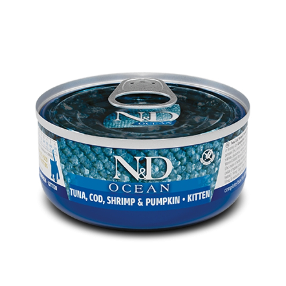 Alimento Húmedo para Gato N&D Ocean Tuna, Cod, Shrimp & Pumpkin Kitten 70 g