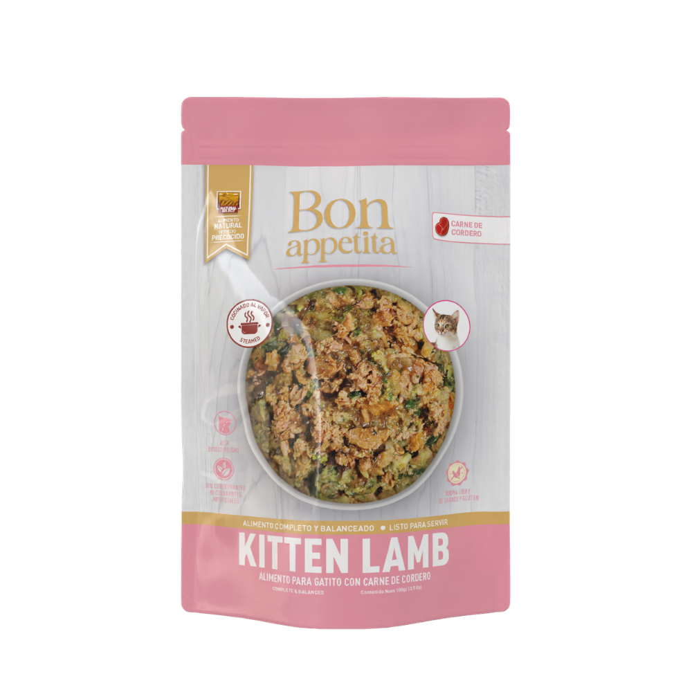 Alimento húmedo completo y balanceado para gatitos formulado con cordero (lamb) como fuente de proteína. Su receta está diseñada para apoyar el crecimiento saludable, el desarrollo muscular y el fortalecimiento del sistema inmunológico en los primeros meses de vida.
