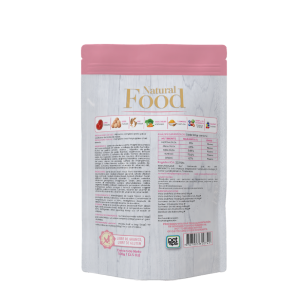 Su presentación en 100 g es práctica, lista para servir y altamente palatable, ideal para gatitos con apetito exigente o en etapa de transición.