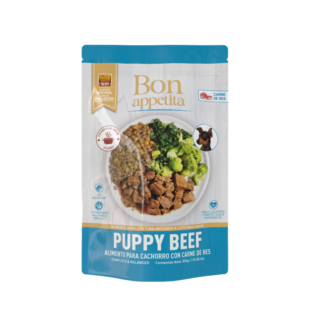 Su presentación en 300 g es práctica, fácil de servir y altamente palatable, perfecta incluso para cachorros con apetito selectivo o exigente.