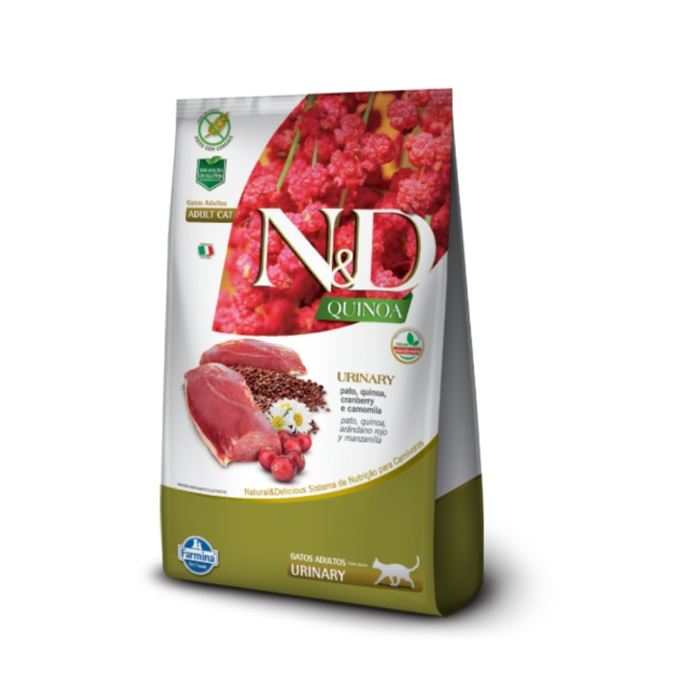N&D Quinoa Feline Urinary Pato es un alimento completo y balanceado para gatos adultos, formulado para apoyar la salud del tracto urinario.